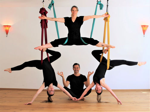 FREE Aerial Yin & Mantra Yoga Class von Katharina Rinn mit Sascha Zordan und Antonia Rinn